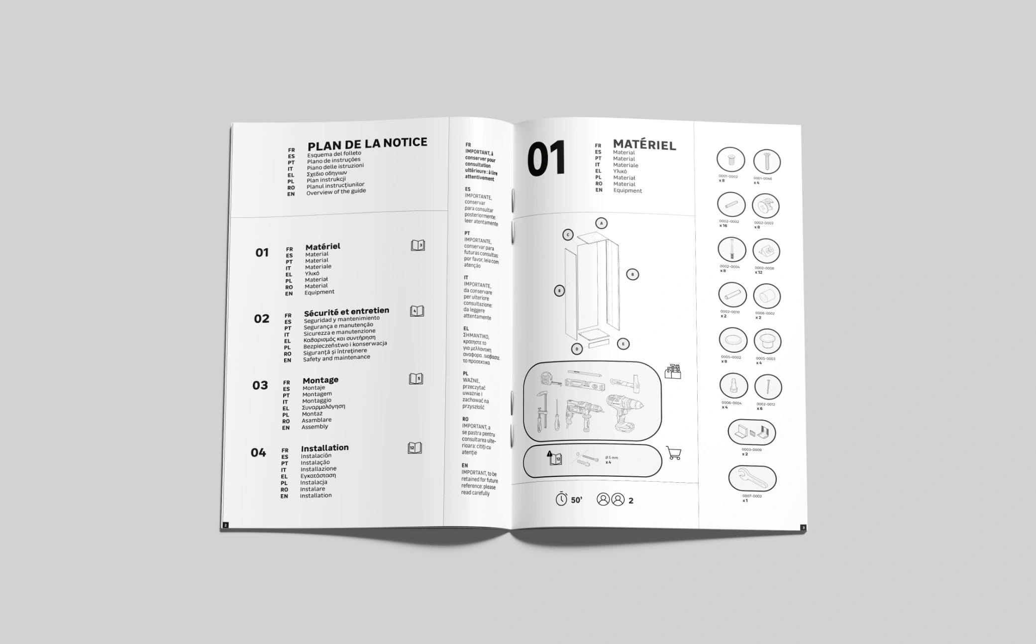 Pour commencer, le studio est intervenue pour refondre la charte des notices de la collection, pour réaliser ensuite les 48 notices de la gamme. Toute la pédagogie a été pensé par le studio, en collaboration avec les ingénieurs et plusieurs tests clients.