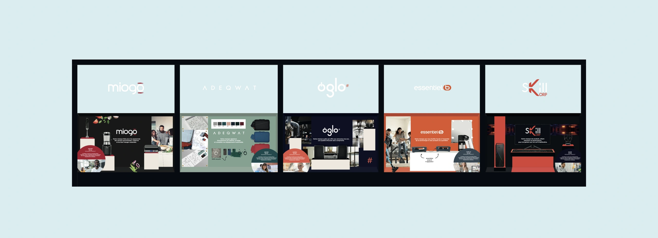 Nous avons proposé différents packs en carton recyclé, avec un code couleur pour chaque univers de la maison.